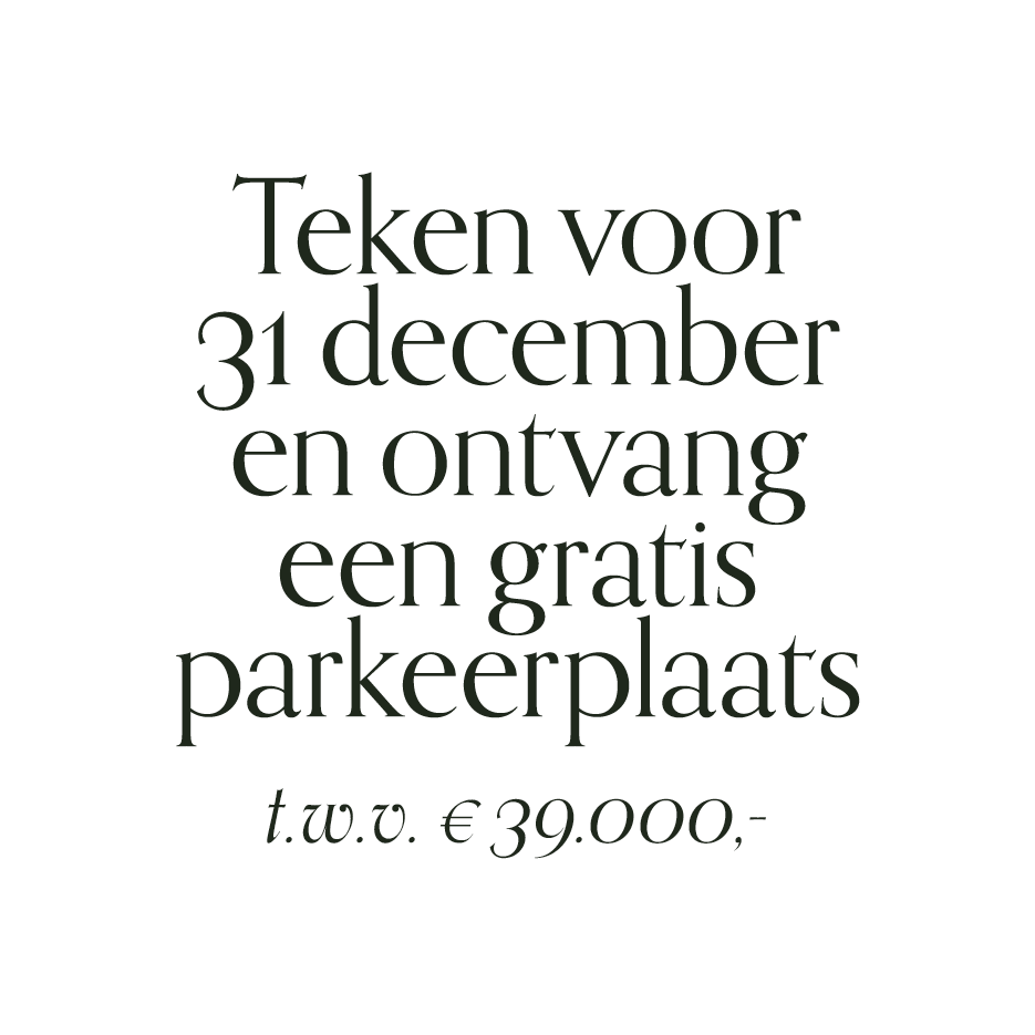 De Oost Hoofddorp biedt iets extra’s voor wie dit jaar de stap zet. Teken vóór 31 december 2025 je overeenkomst bij De Oost Hoofddorp en ontvang een gratis parkeerplaats t.w.v. €39.000,-. Vanaf 17 november kun je tekenen voor je nieuwe thuis.